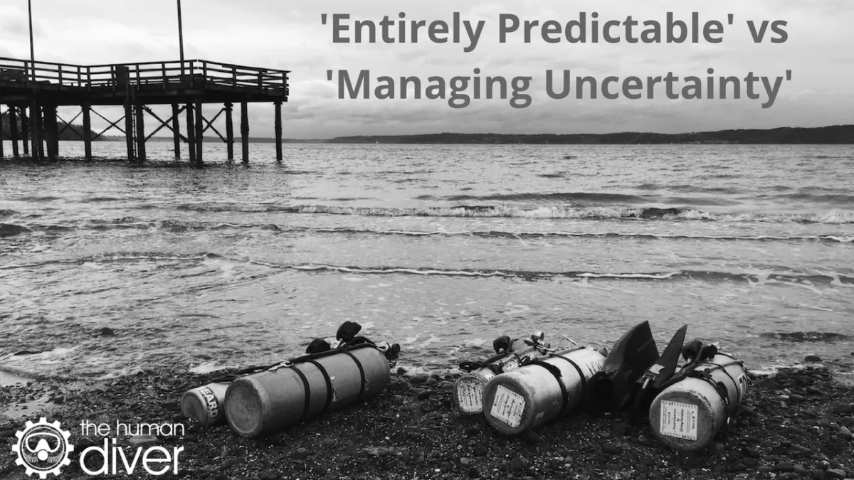 So when someone says ‘entirely predictable’ when referring to the outcome of dive which didn’t end well, ask them if the outcome was 100% predictable given the variables which the incident diver was managing at that time with the motivation, experience, mindset they had because I can pretty much guarantee that any observer will not be tracking or using the same variables as the incident diver was using to manage their uncertainty on that particular dive.