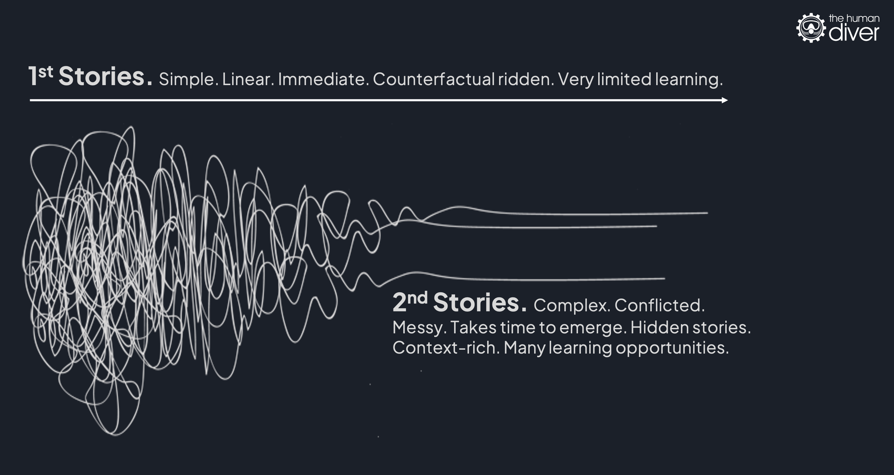 The webinar starts by separating ‘first stories’ from ‘second stories.’ First stories are neat and short. They use counterfactuals, words like ‘failed to’, ‘should have’, ‘lack of situation awareness’, and ‘poor leadership’. They feel satisfying because we know the outcome and can join the dots backwards. We've found someone to blame; it's not us. Move on.