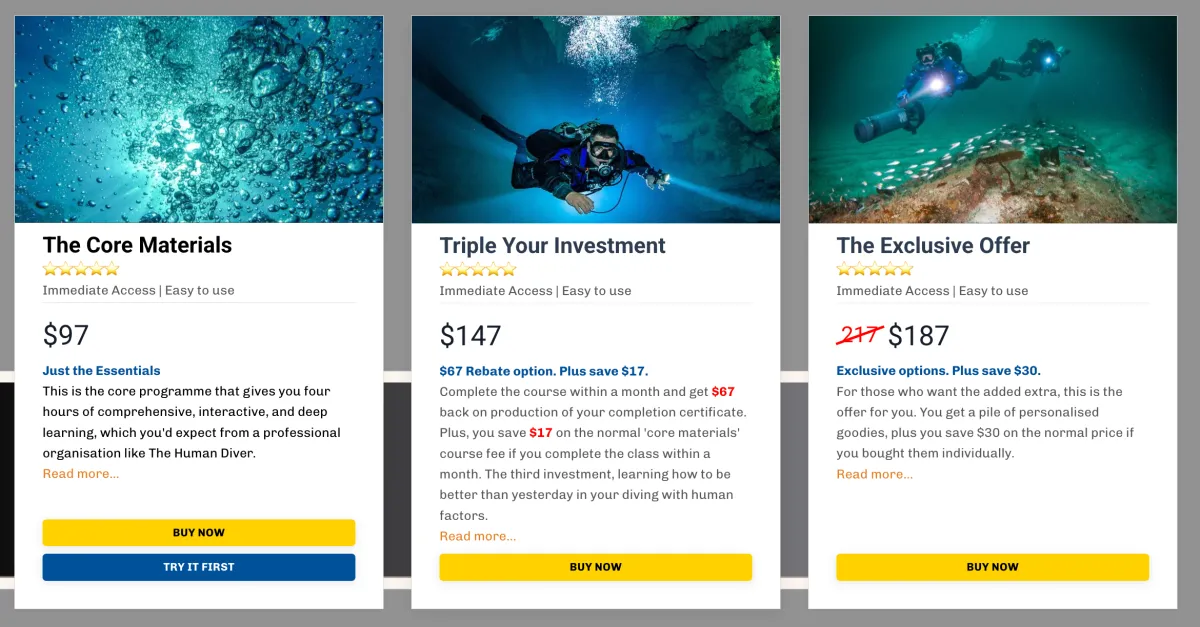 Yes, The Human Diver runs an affiliate scheme whereby you can purchase credits and then provide the course to your student at a discounted rate or for free. Please get in touch via the contact page.
