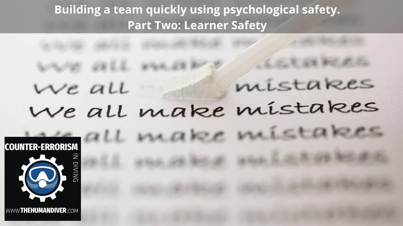 This is the second part in a series of four blogs which looks at building psychological safety within your instructional setting or ‘fun’ diving environments. The first part was on INCLUSION SAFETY where I showed how to increase the chances that your team members will feel included by creating the right environment.